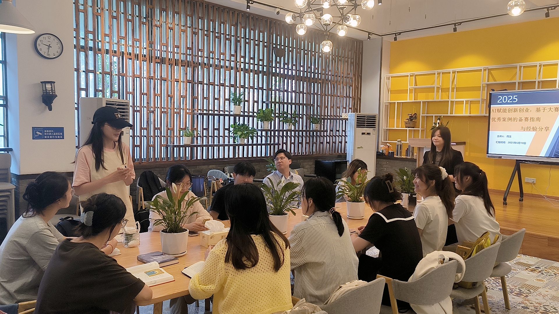 活动环节,辅导员周玉老师采用OH卡(潜意识投射卡)心理工具,引导参与者透过卡牌意象展开自我对话与分享。同学们在交流中打破学科背景的隔阂,在思维碰撞中重新审视个人成长与团队协作的关系。 在随后的“AI赋能双创”活动中,同学们再次跟随指导老师的脚步,从算法逻辑逐步延伸至创业实践,集中进行案例研讨,充分思考人工智能技术在医疗、教育等领域的应用前景,并围绕“技术伦理与社会责任”展开辩论,整场活动参与者们互动积极、思维活跃、氛围热烈。学生党员袁晓雅表示:“科创不仅是代码和模型,更需人文关怀,这场讨论让我对技术创新的边界有了很多新的思考。”
