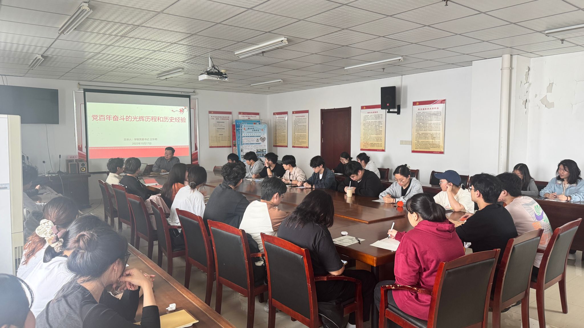 开班仪式后进行以《党百年奋斗的光辉历程和历史经验》为主题的首次授课。王东明结合校史校情,指出学院党员师生在服务地方产业发展中的责任,鼓励学员从党史中汲取经验力量。周贵勤针对青年学员特点,提出要将党史学习教育与党章党规学习结合,将理想信念教育与专业能力提升结合,将个人成长规划与国家发展需求结合,自觉履行党员义务、参与党组织活动、发挥先锋模范作用,以实际行动争取早日成为一名合格的共产党员。(永利集团304am登录 张静斐)